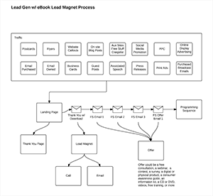 As I said, every website needs a lead magnet. As I developed the first version of the Agile B2B Client Acquisition Framework, I created process flow Charts for the pieces that make up the entire model. This is just focused on promoting and delivering an eBook lead magnet.