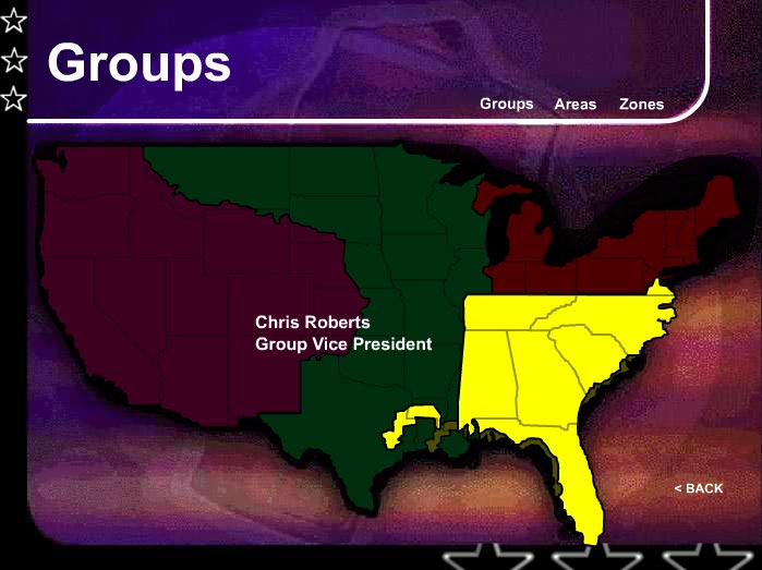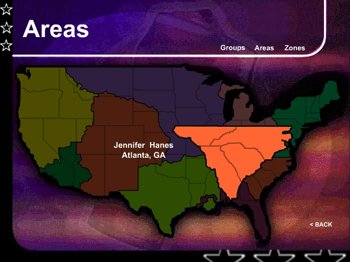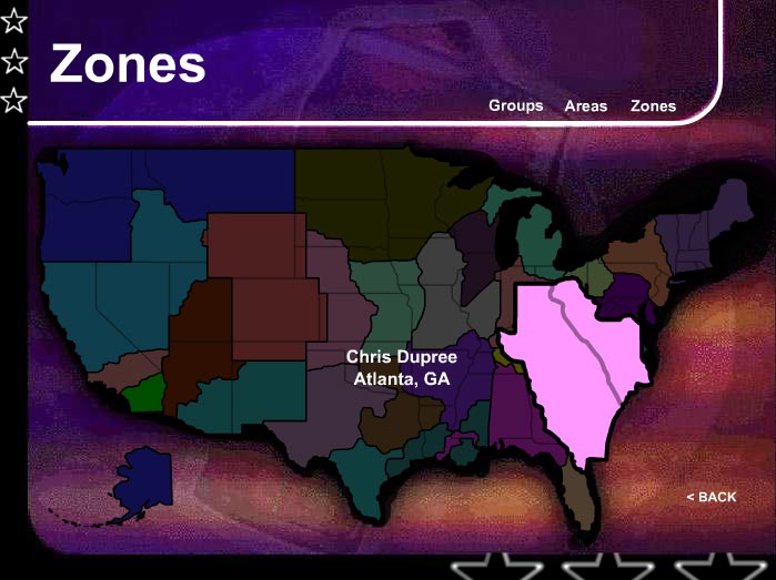 This was a flash map I developed for Coca-Cola North America that helped employees get to know the people (along with their contact information) who were responsible for the various Groups, Areas and Zones of the company across the U.S.