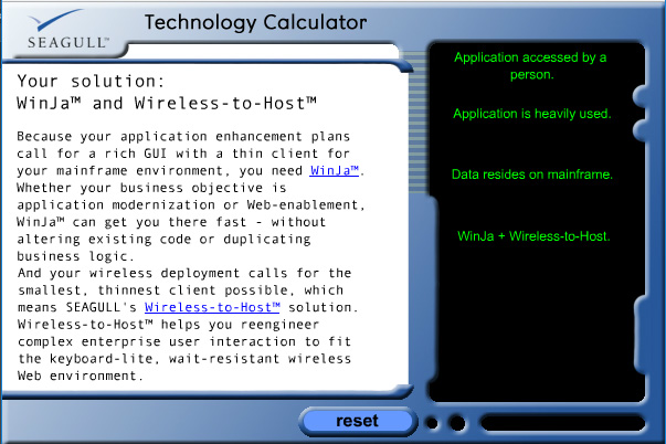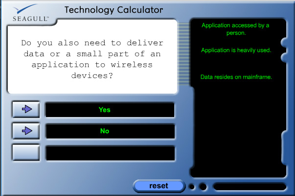 Seagull Software wanted a way for prospects to easily find the software product that best served their needs. Together we worked to develop a list of questions whose answers led you to a solution. So that, by simply answering questions, you were able to identify the perfect software for your needs and budget.